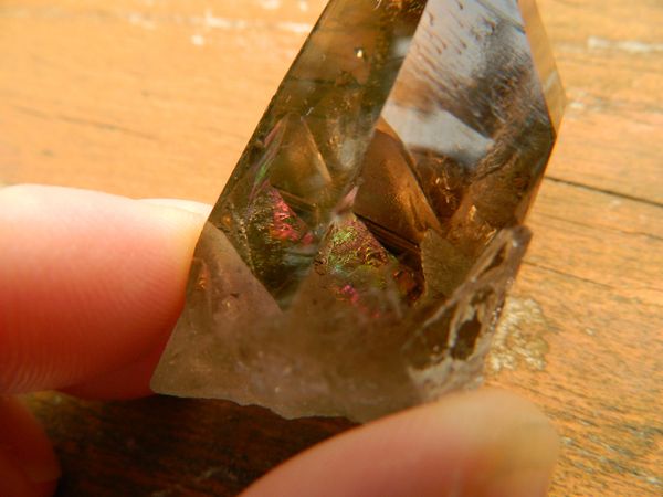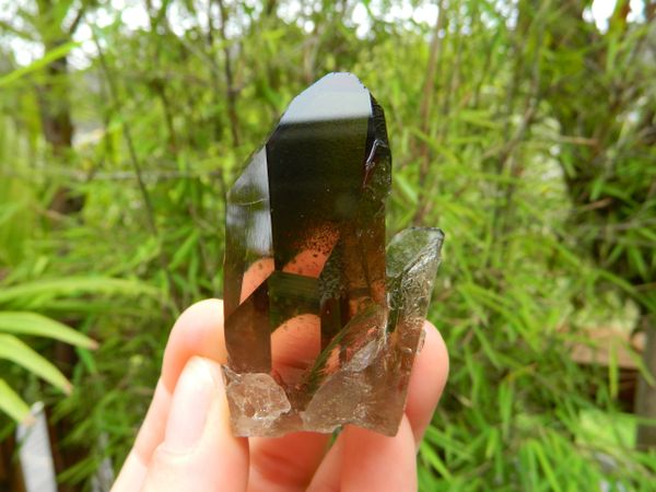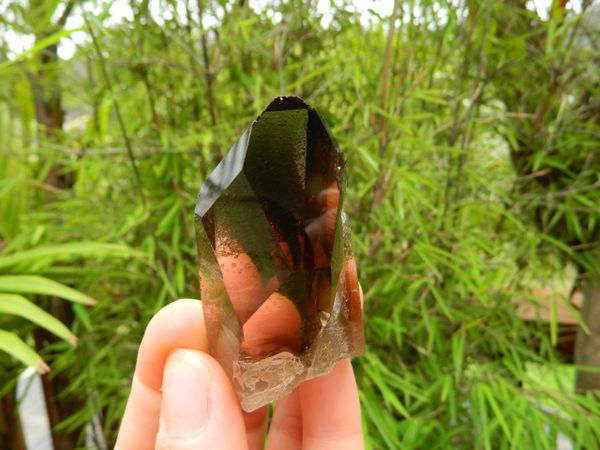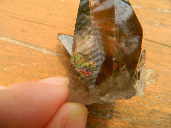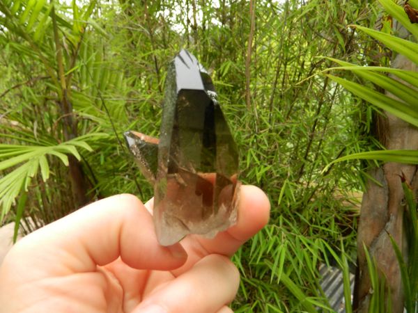 This Black Smoky Quartz from Brazil I am offering is truly a beautiful RARE piece. It is nicely dark with much clarity, has many crystal clear activation windows, and other worldly etchings, used in ceremony for scrying. Inside the centre of this light being is a large rainbow..the spectrum of all colours representing each chakra of the luminous energy field.