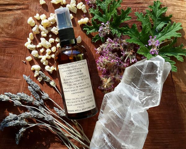 Crystal ~ Aromatic & Lunar Alchemy create a potent vibration for mood relaxation, melting away busy thoughts and harmoniously bringing in feelings of inner peace & serenity.