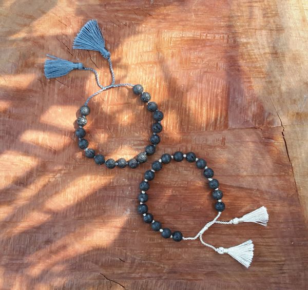 Lava Stone Handknotted in Silk~ Adjustable wrist band for Aromatherapy ~ Essential Oil Diffuser