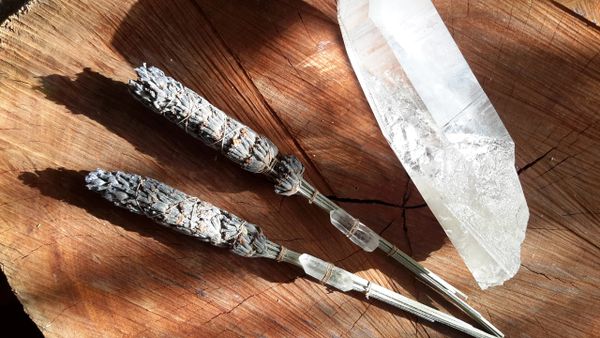 Light your sacred herb and allow your intention to flow through the faery wands crystal quartz, along the flower bud and taken up into the universal energies through her sacred smoke...here, your intention will be heard and manifestation begins..