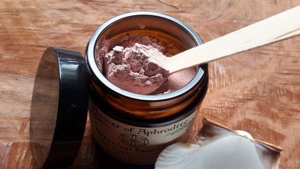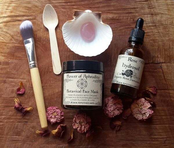 I hope you enjoy this favcal beauty ritual on many levels, as much as i have enjoyed developing it. It has been a craft I have been working on all year, and finally I have acheived the perfect balance and ingredients. All captured in amber glass to protect and ensure a longer shelf life. You will receive 60ml of Organic Hydrosol & 50g of botanical clay dry ingredients together in a sheer wine red bag.