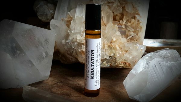 Blended with the finest Pure Essential Oils of Frankincense Olibanum, Rosemary, Lavender, Lemon and Cedarwood Atlas in Organic Jojoba and Coconut Oils, this High Vibrational Aromatherapy Potion will transcend you to the realm of pure bliss and silence assisting your meditation journey.